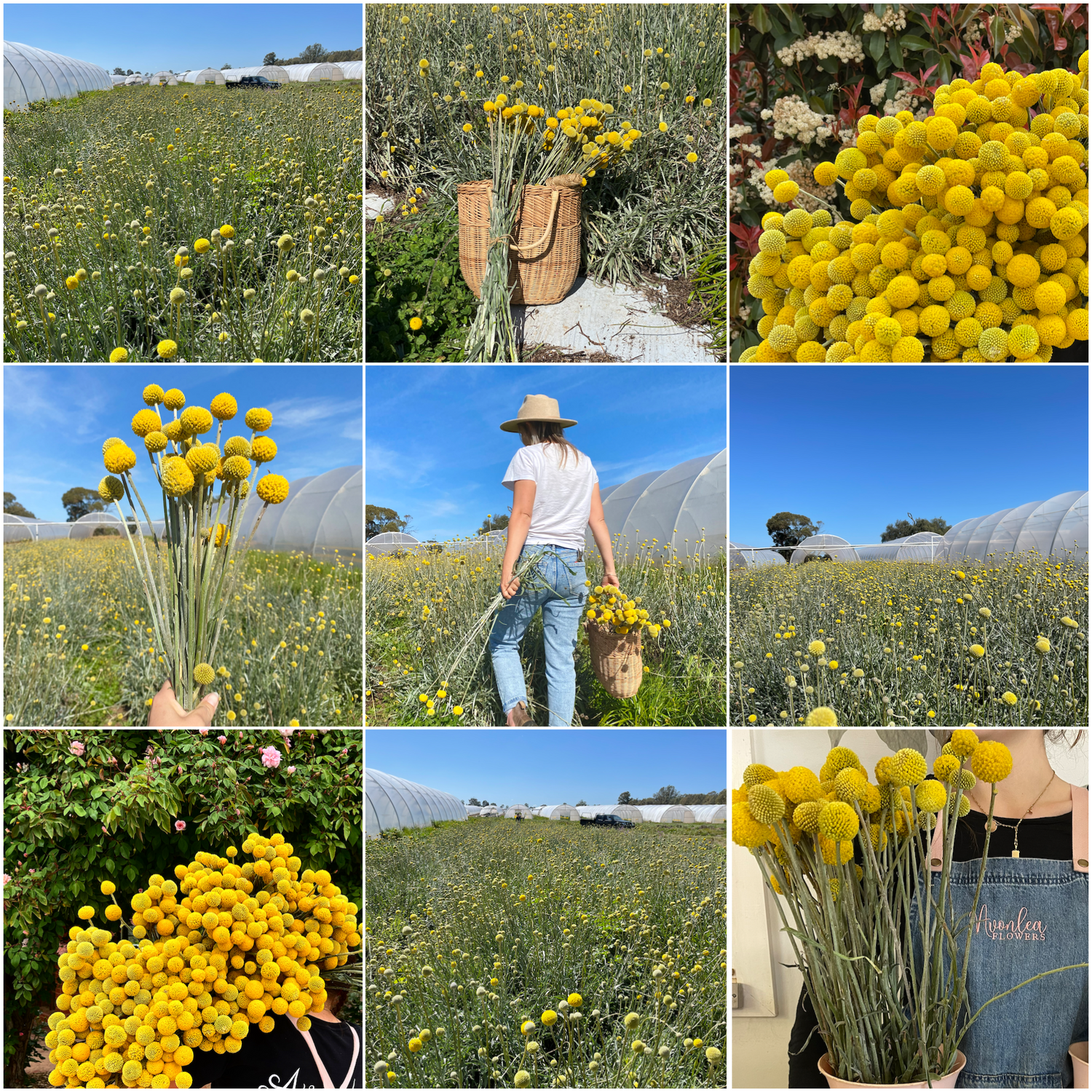 Craspedia Golbosa or Billy Buttons are a perennial, Australian native with long stemmed, golden globe flowers. Billy Buttons are also perfect for drying.
