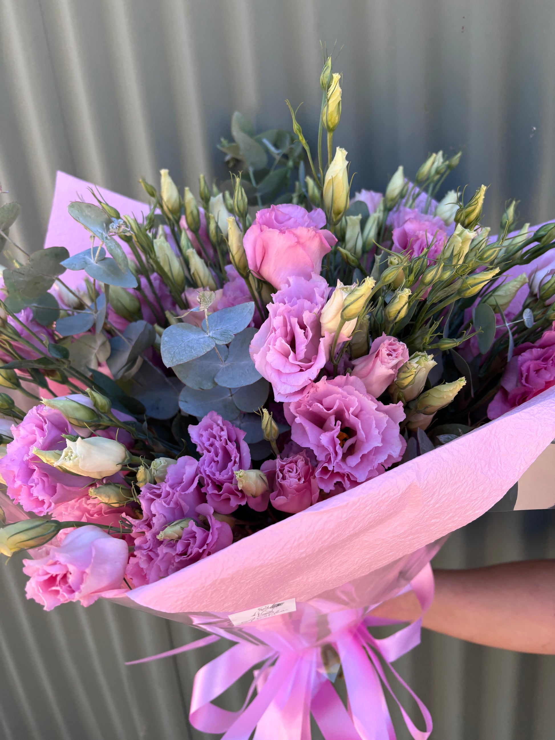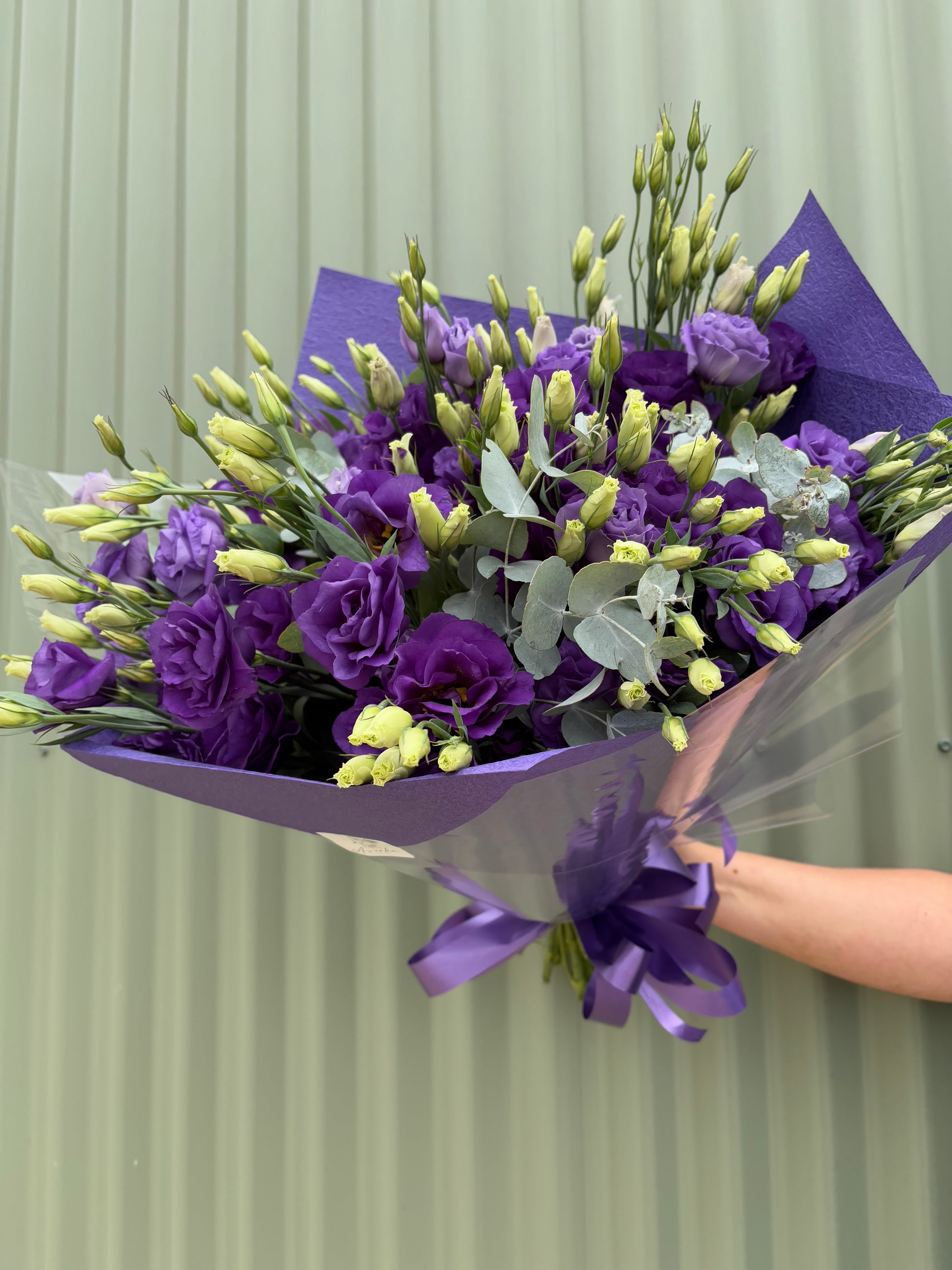 A beautiful posy arranged with the freshest lisianthus from the farm. Lisianthus are one of our most popular flowers due to their long vase life & wide variety of colours.